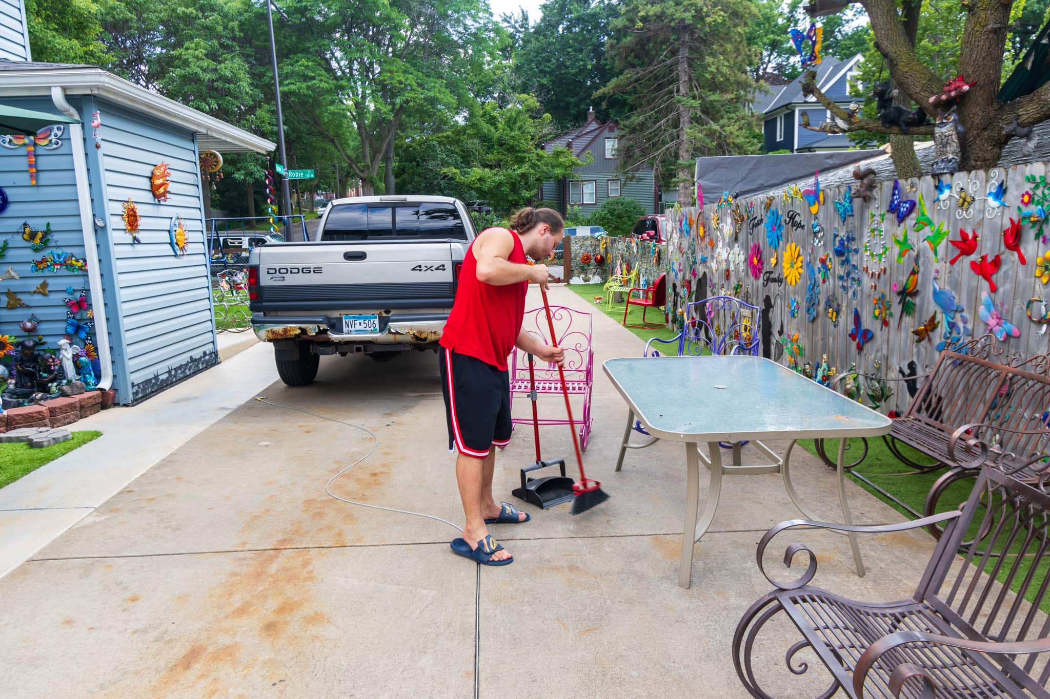 On the ride on July 6, 2024, the West Side hills, reflecting on a long-gone factory and a woman who turned her frustrations during COVID into a delightful thousand-piece outdoor display of metal art.